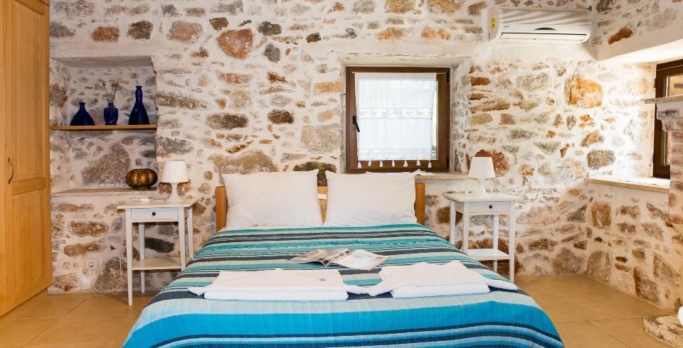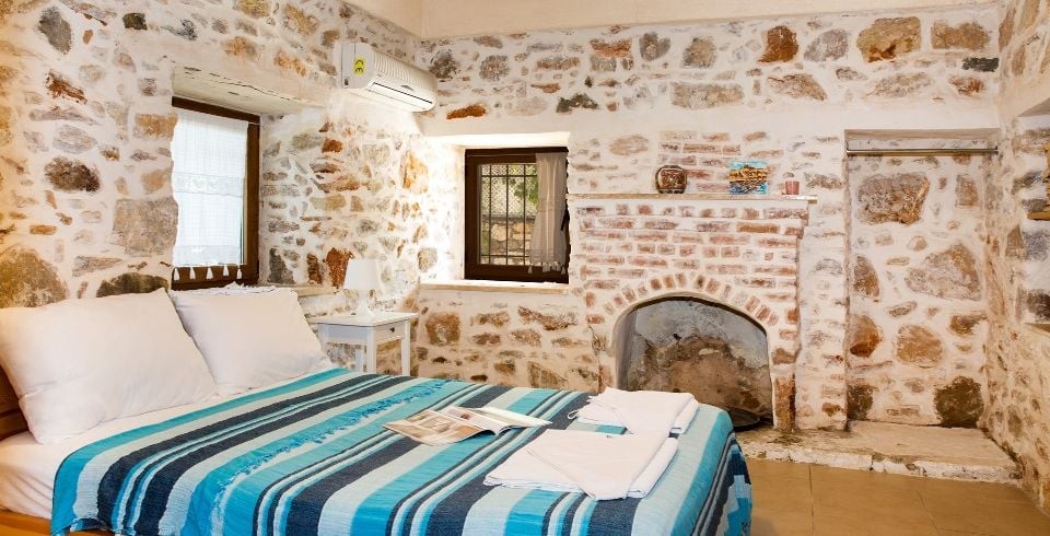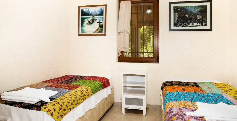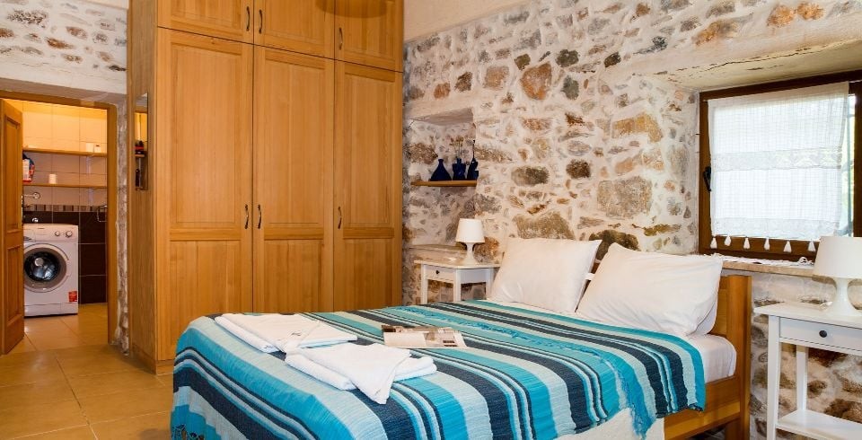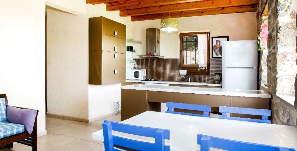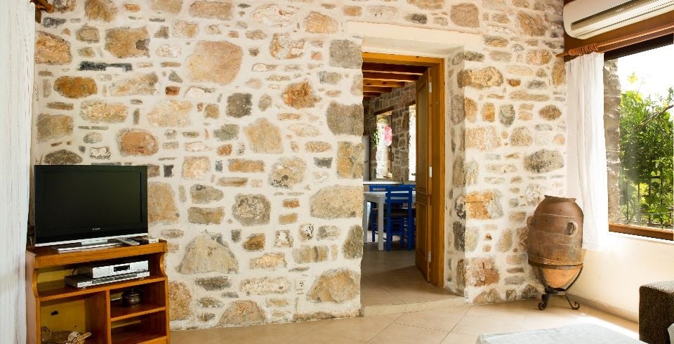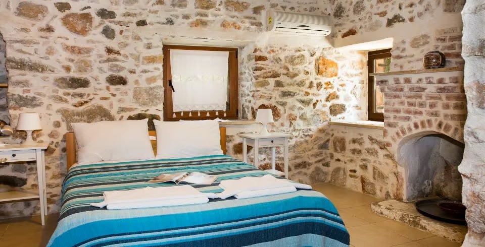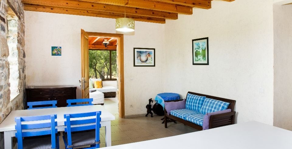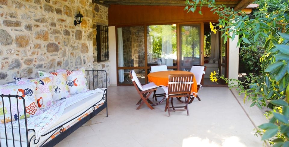 Toplam 2 yatak odası ve 4 kişilik konaklama kapasitesi ile küçük aileler ve balayı çiftleri için ideal bir seçenektir. Ana yatak odasında çift kişilik yatak, klima ve özel banyo bulunurken; ikinci yatak odasında iki tek kişilik yatak yer alır. Geniş ve aydınlık salon, doğrudan terasa açılan kapılarıyla bahçeyle bütünleşmiş bir yaşam alanı sunar. Salonda klima, oturma grubu, televizyon, müzik sistemi ve şömine bulunmaktadır.