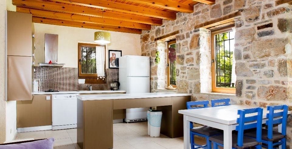 Tam donanımlı Amerikan mutfak; bulaşık makinesi, fırın, mikrodalga, kettle ve tüm mutfak gereçleriyle ev konforu sunar. Dış mekânda ise şezlonglarla çevrili özel yüzme havuzu, taş barbekü ve geniş veranda alanı misafirlerin keyifli vakit geçirmesi için tasarlanmıştır.