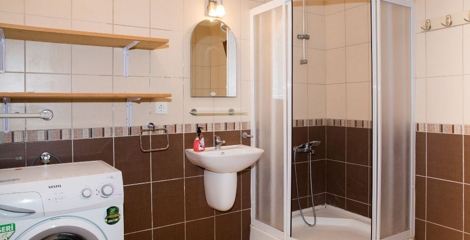 Mutfak : Geniş Amerikan mutfak, klima, yemek masası, buz dolabı, bulaşık makinası, çamaşır makinası, ankastre fırın, 4'lü ankastre ocak, kettle, tost makinası bulunmaktadır.