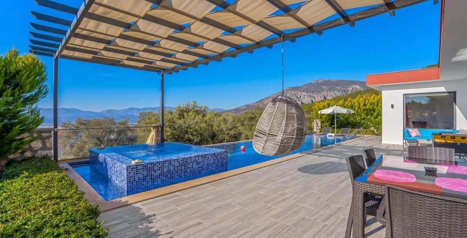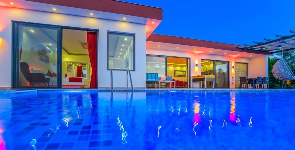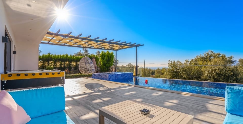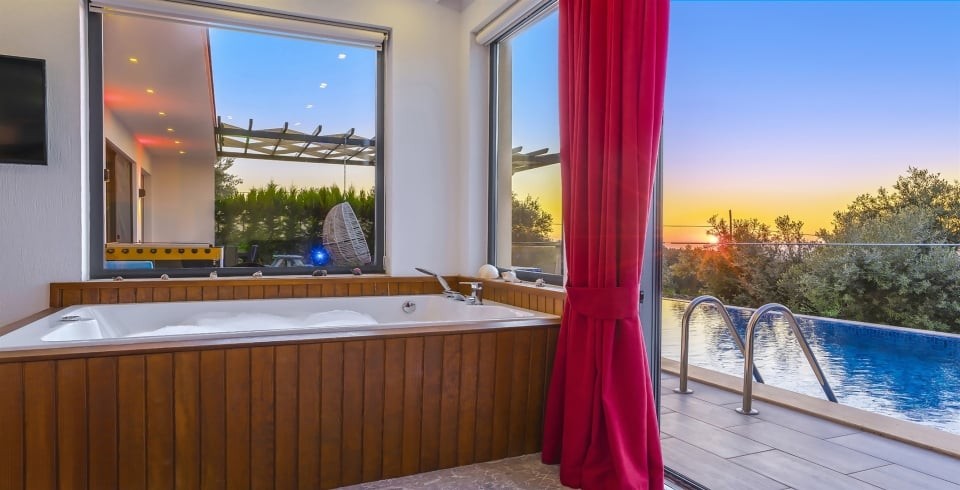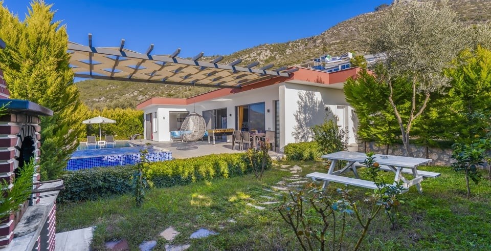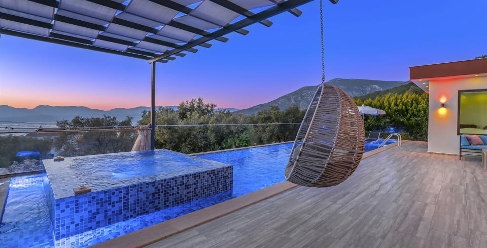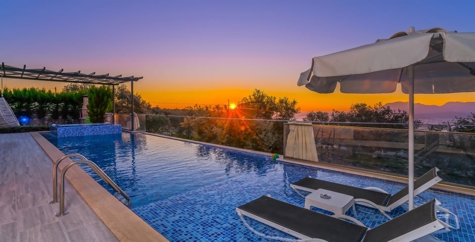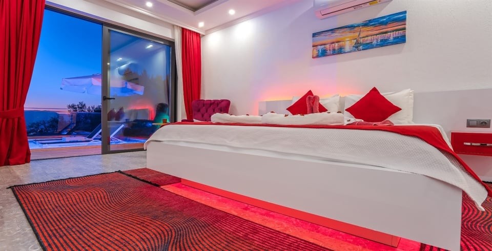 Villa Güneş, Kalkan’ın Üzümlü bölgesinde, doğayla iç içe, korunaklı ve huzurlu bir balayı villasıdır. Tek yatak odası ve tek banyosu ile 2 kişi kapasiteli olan bu villa, romantik kaçamaklar için özel olarak dekore edilmiştir. Yatak odasında çift kişilik yatak, klima, elbise dolabı ve jakuzili balkon bulunmaktadır. Salon kısmında konforlu oturma alanı, TV, klima ve dışarı açılan havuz terasıyla gün ışığı alan bir yaşam alanı sunar.