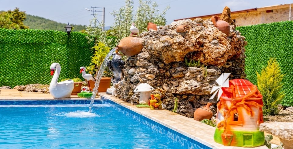 Havuz ve Bahçe: Doğa manzaralı özel yüzme havuzu, salıncak, bahçe oturma grubu, şezlong, güneş şemsiyesi, barbekü bulunmaktadır.