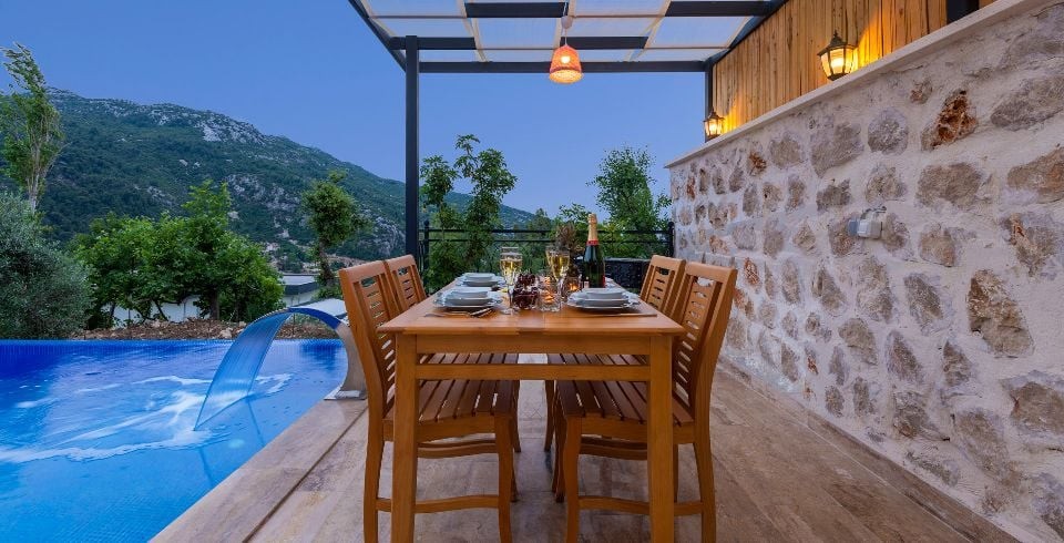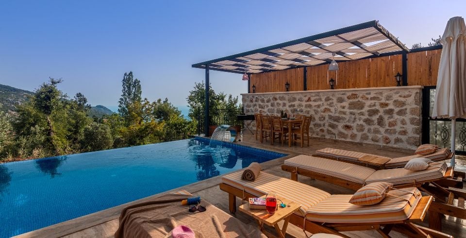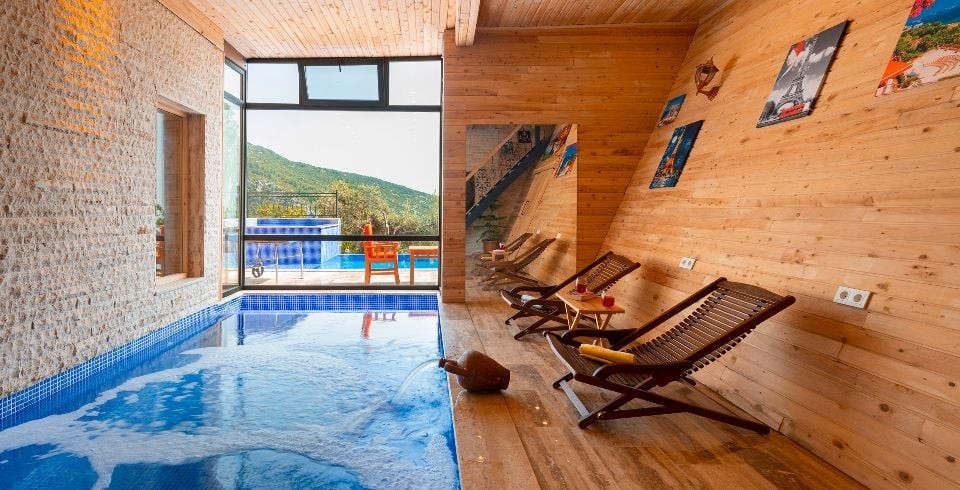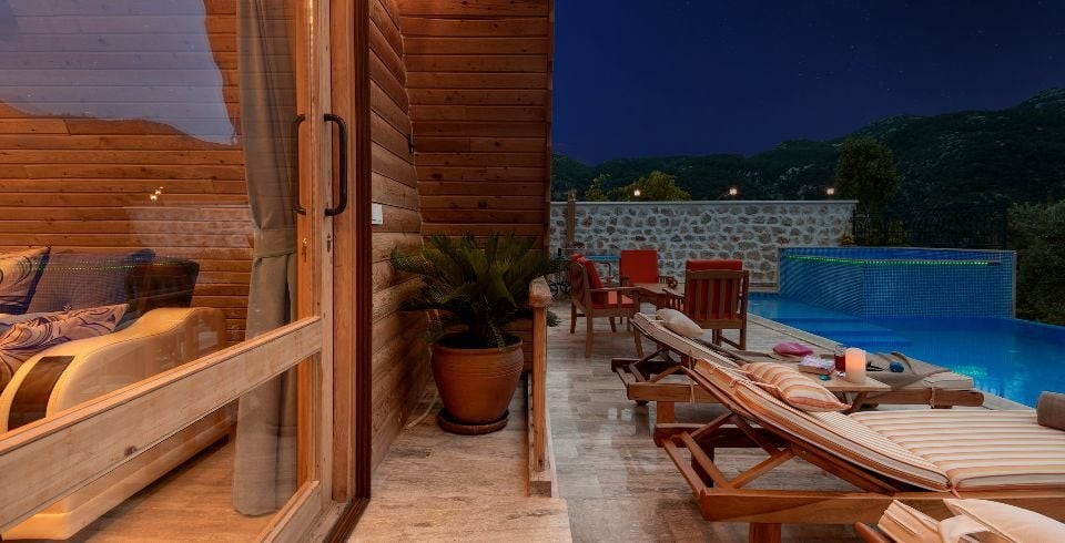 Villa Gürhan Kalkan İslamlar bölgesinde yer almakta olan villamız 4 kişilik kapasiteye sahiptir. Balayı çiftleri ve çekirdek aileler tasarlanmıştır. 2 yatak odası bulunan villamızın her odasında ebeveyn banyosu bulunmaktadır. Yazlık villamızın havuz terası dışarıdan görünmemektedir ve muhafazakar villa tercihinizde bu villamızı değerlendirmenizi tavsiye ederiz. Villa Gürhan da jakuzi , hamam , sauna ve kapalı ısıtmalı havuz bulunmaktadır. Son derece rahat ve konforlu mobilyalarla dizayn edilmiştir Muhafazakar villamızda sizi konuk etmekten mutluluk duyarız.