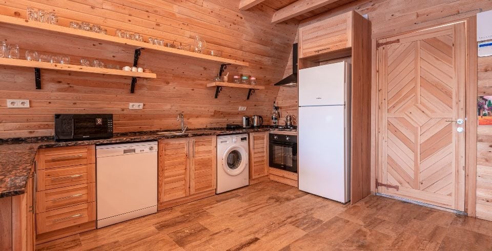Mutfak : Mutfak bölümümüzde, buzdolabı, bulaşık makinesi, çamaşır makinesi, fırın, çatal & bıçak takımı, yemek takımı, kettle vb. mutfak ekipmanları bulunmaktadır.