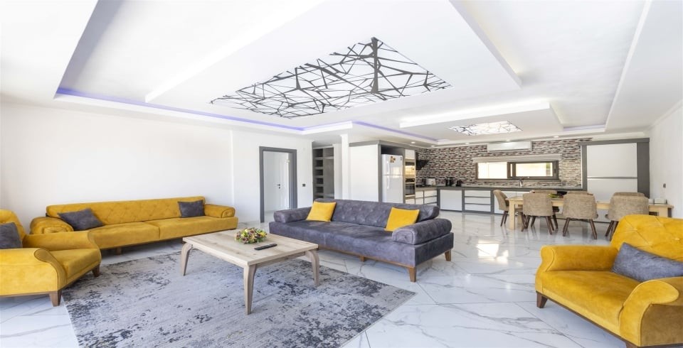 Salon: Salonda oturma grubu, TV, klima, sehpa, DVD oynatıcı bulunmaktadır. Havuz terasına çıkış vardır.