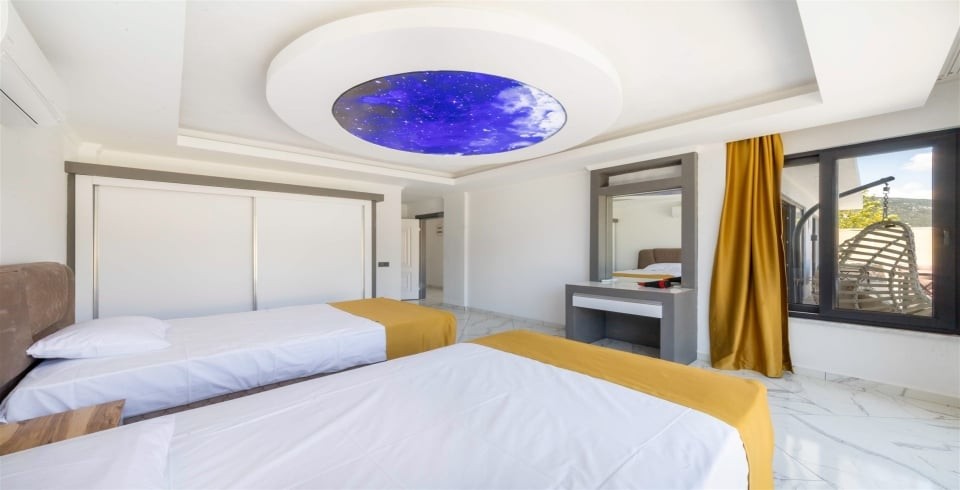 2.Yatak Odası: 2 adet tek kişilik  yatak,  elbise dolabı, komodin, klima,banyo ve tuvalet bulunmaktadır.