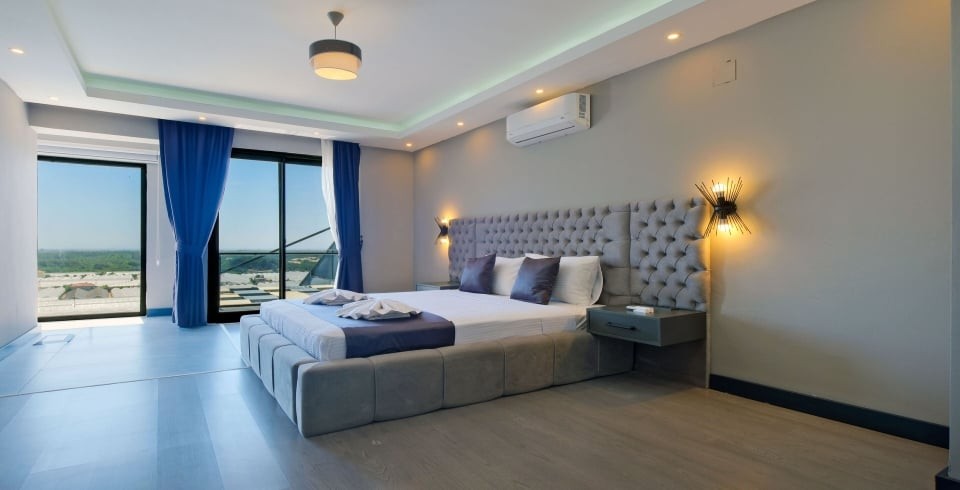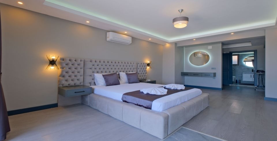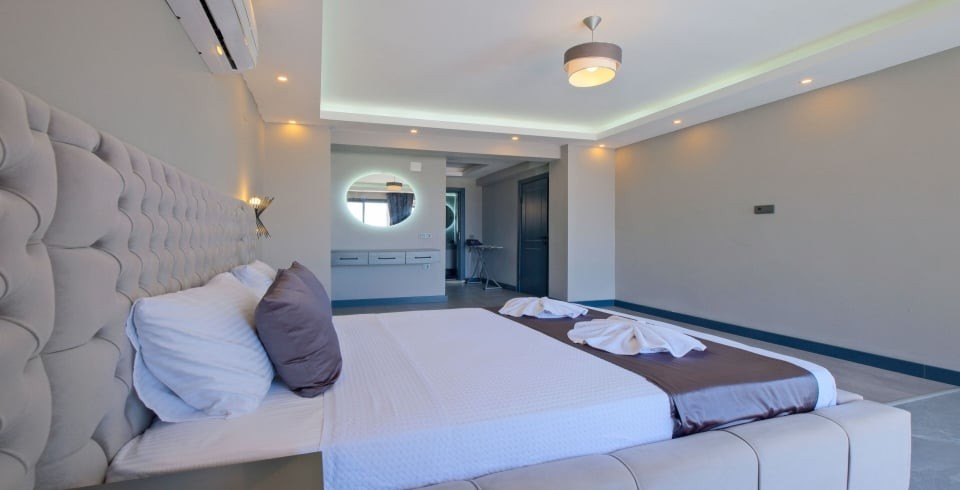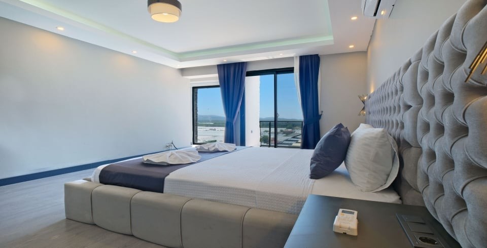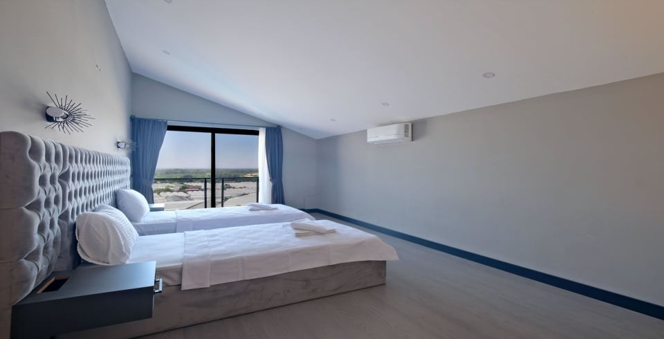 Villa Hanlı 4, Fethiye’nin Kumluova bölgesinde konumlanmış, 8 kişi kapasiteli geniş bir villadır. 4 yatak odası ve 4 banyosu ile kalabalık aileler veya arkadaş grupları için ideal konaklama imkânı sunar. Her yatak odasında klima, elbise dolabı ve komodin gibi temel mobilyalar bulunduğu gibi, ana yatak odasında özel banyo da yer alır.