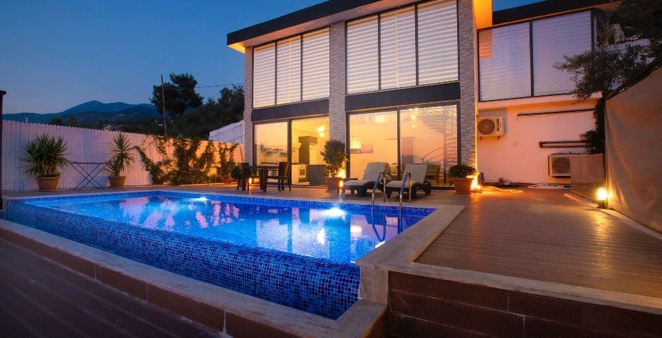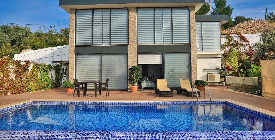 Havuz : Villamızın havuzu ise etrafı dışarıdan görülmeyecek şekilde korunaklı olup sizlere huzurlu ve keyifli havuz deneyimi sunmaktadır. Size özel muhafazakâr yüzme havuzu, şezlong keyfi ve şemsiye ile yazın en güzel günlerinde sizleri bekliyor.