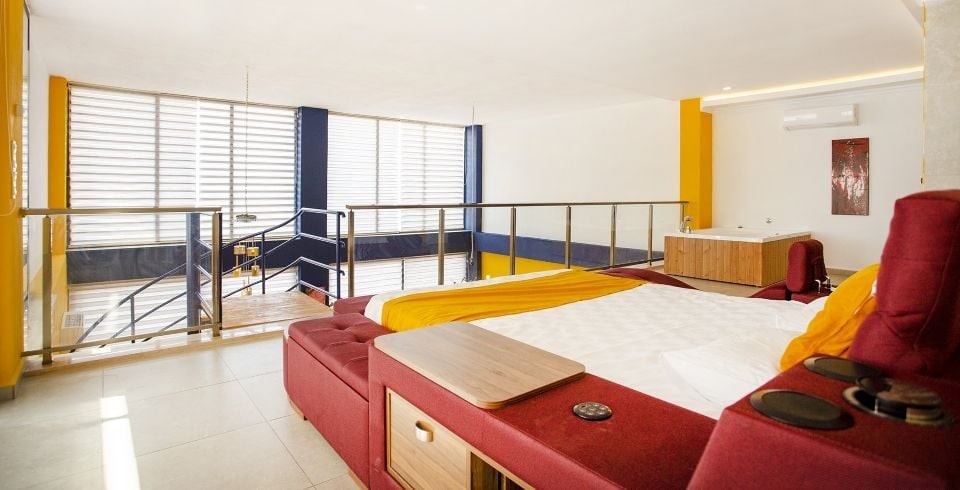 1. Yatak Odası : 1 adet çift kişilik yatak, kapalı havuz, klima, jakuzi, komodin, elbise dolabı, makyaj masası, banyo ve lavabo bulunmaktadır.