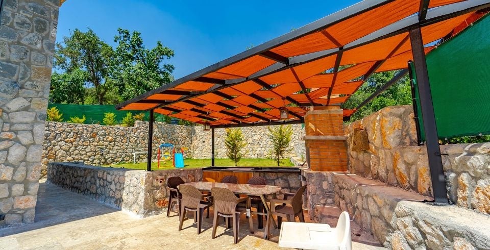 Havuz ve Bahçe: Havuz ve bahçesi korunaklı olup dışarıdan gözükmemektedir. Özel yüzme havuzu, şezlong, şemsiye, salıncak, oyun parkı yemek masası ve barbekü bulunmaktadır.