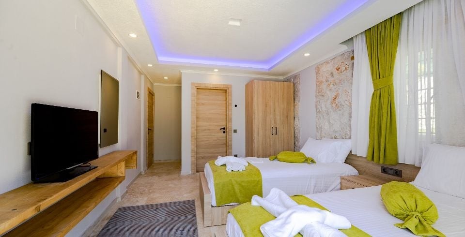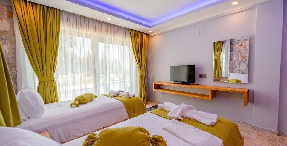 3. Yatak Odası: 2 adet tek kişilik yatak komodin, elbise dolabı, makyaj masası, klima banyo ve tuvalet bulunmaktadır.