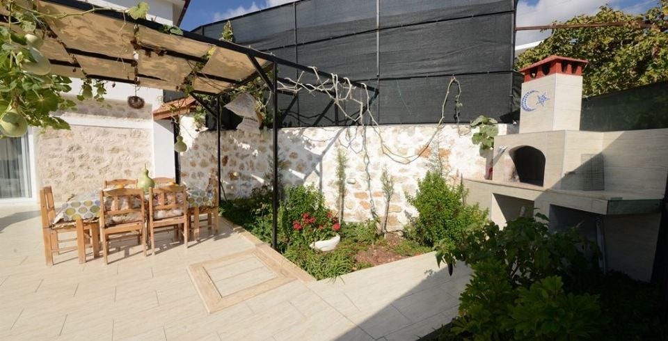Bahçe : Villamızın bahçesinde özel yüzme havuzu, güneşlenmeniz için 4 adet şezlong, güneşlenme terası, mangal keyfiniz için barbekü, güneş şemsiyesi bulunmaktadır.