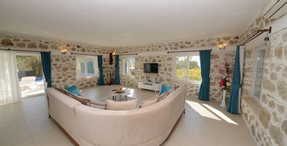 Salon: Villa Hayal’ın salonunda sizi şık bir oturma grubu ile klima, televizyon, internet, uydu, koltuk, sehpa ile ferah bir salon bekliyor olacaktır. Havuz terasına çıkış yapılmaktadır.