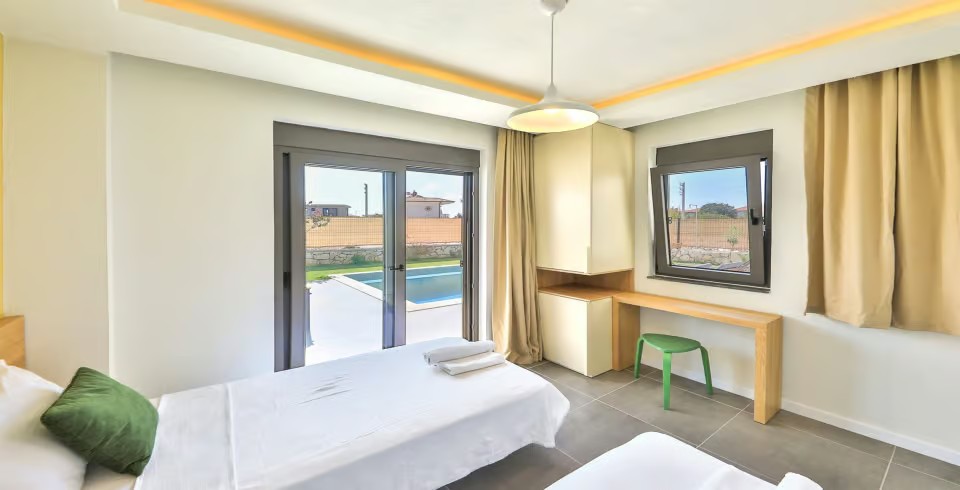 3. Yatak Odası : 2 adet tek kişilik yatak, klima, komodin, elbise dolabı, makyaj masası, banyo ve tuvalet bulunmaktadır.