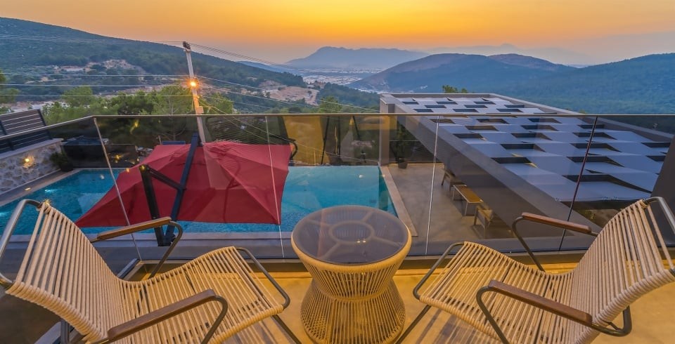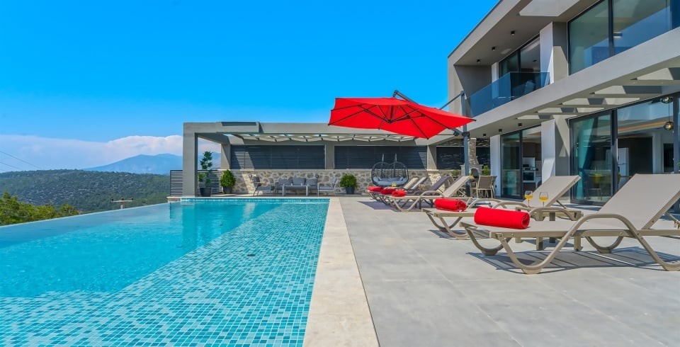 Villa Hedef, Kalkan Akbel bölgesinde yer alan modern mimarili villamız 3 yatak odalı ve 6 kişilik konaklama kapasitesine sahiptir. Villamızın geniş ve doğa manzaralı bahçesinde havuz, şezlong, güneş şemsiyeleri, oturma köşesi, salıncak ve yemek masası yer almaktadır. Bunun yanı sıra konforlu bir tatil geçirebilmeniz için en kaliteli eşyalar ile dekore edilmiş yatak odalarından birinde jakuzi yer almaktadır. Hamam , sauna , spor aletleri , sinema odası gibi aktiviteler ile tatilinizi daha keyifli hale getirebilirsiniz.
