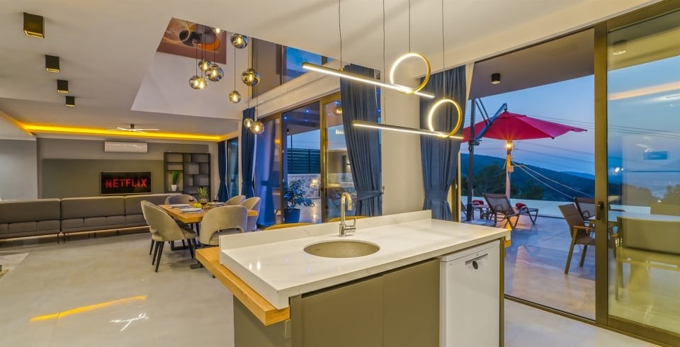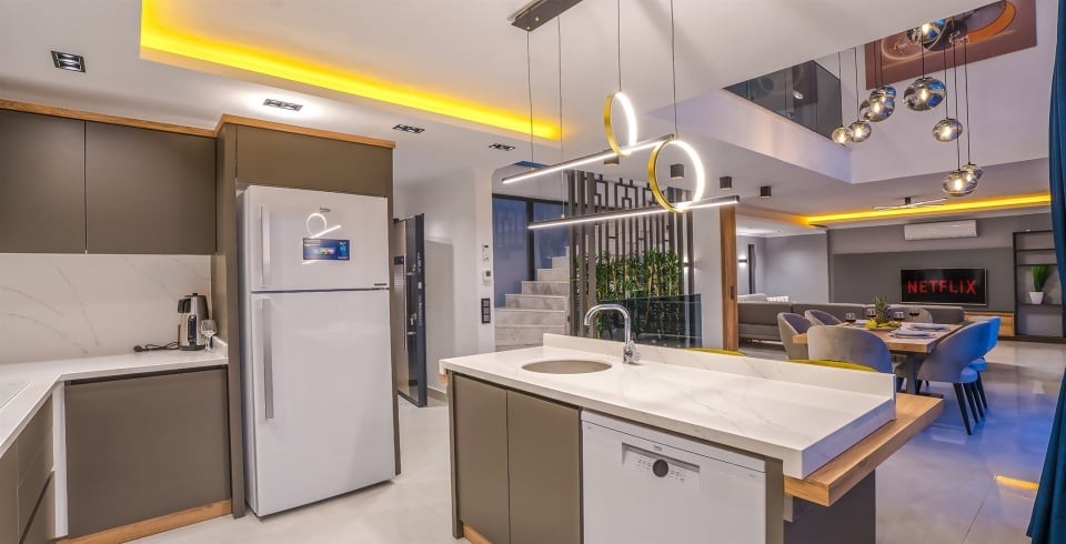 Mutfak : Modern ve şık Amerikan mutfak içerisinde buzdolabı, fırın, bulaşık ve çamaşır makinesi bulunmaktadır.
