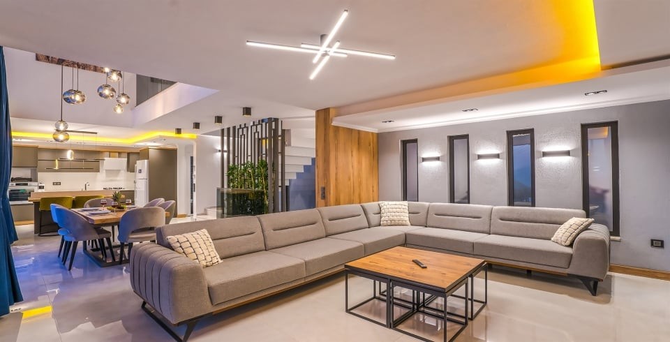 Salon : Salon bölümünde şık ve konforlu bir oturma grubu, TV ve havuz terasına çıkış bulunmaktadır.