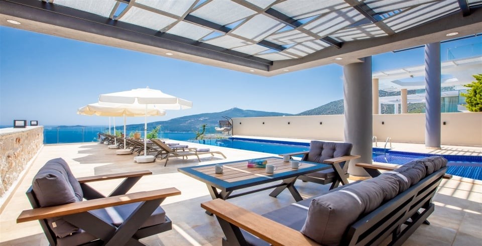 Salon: Oturma grubu, Uydu TV, Klima, yemek masası, Havuz kenarına çıkış bulunmaktadır.