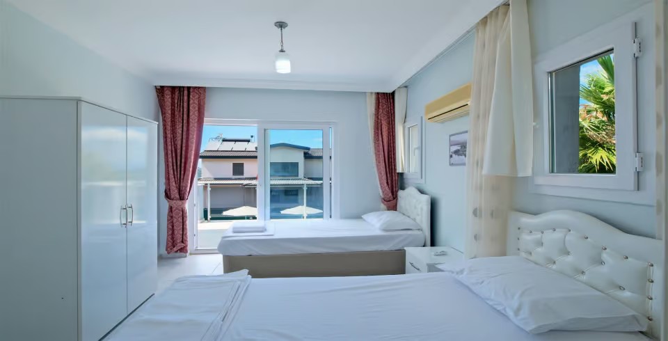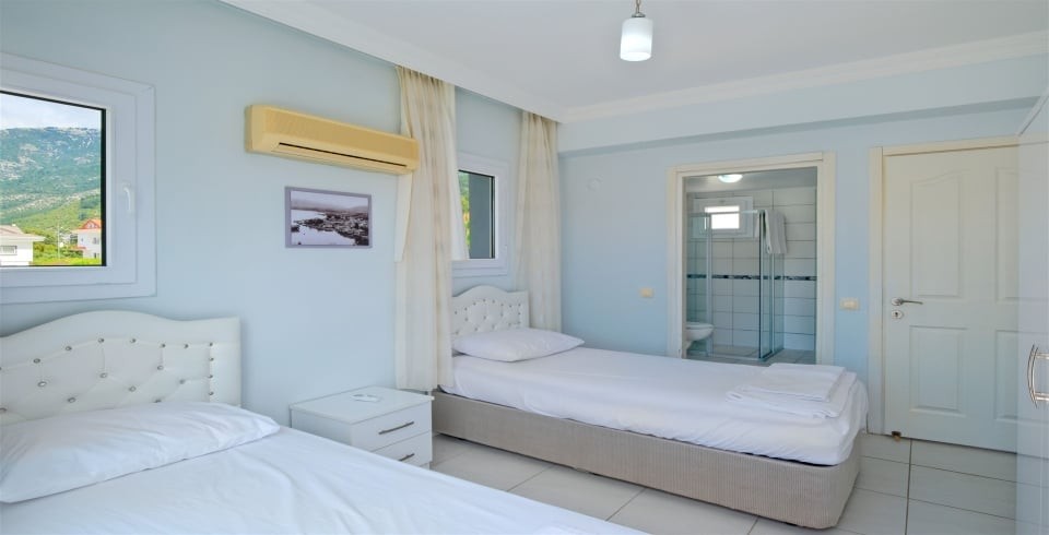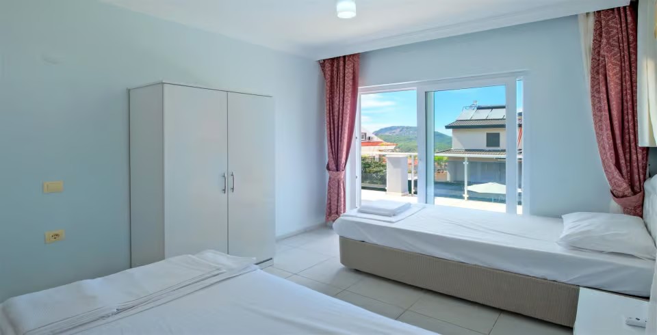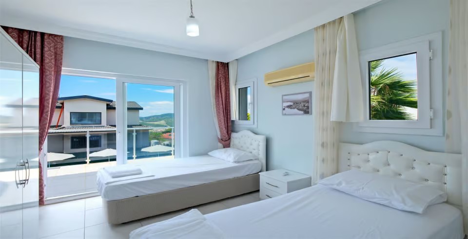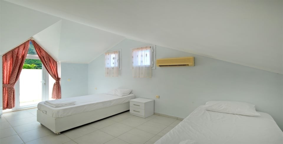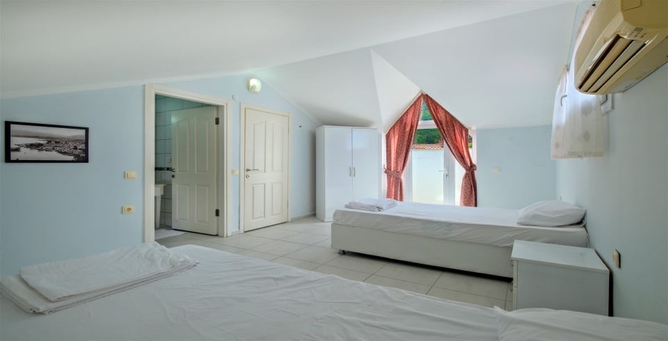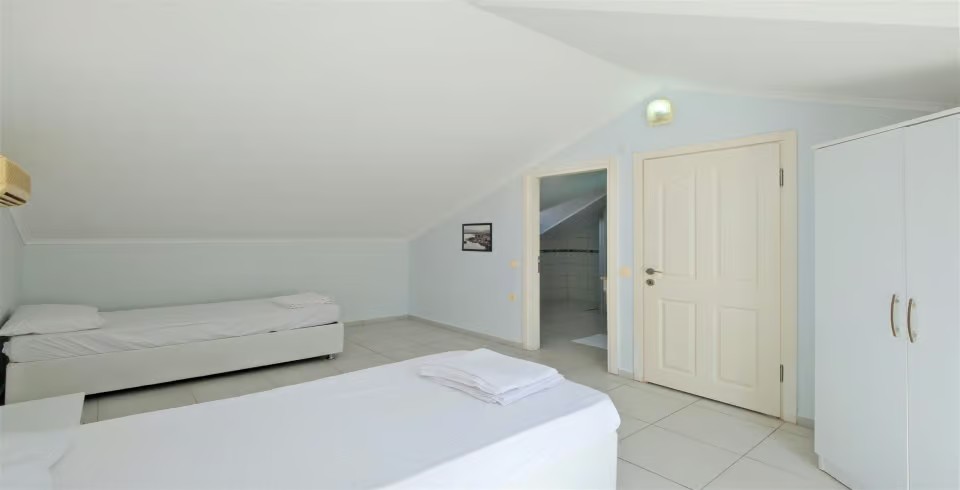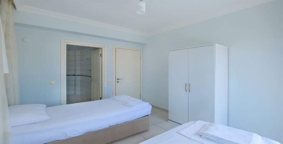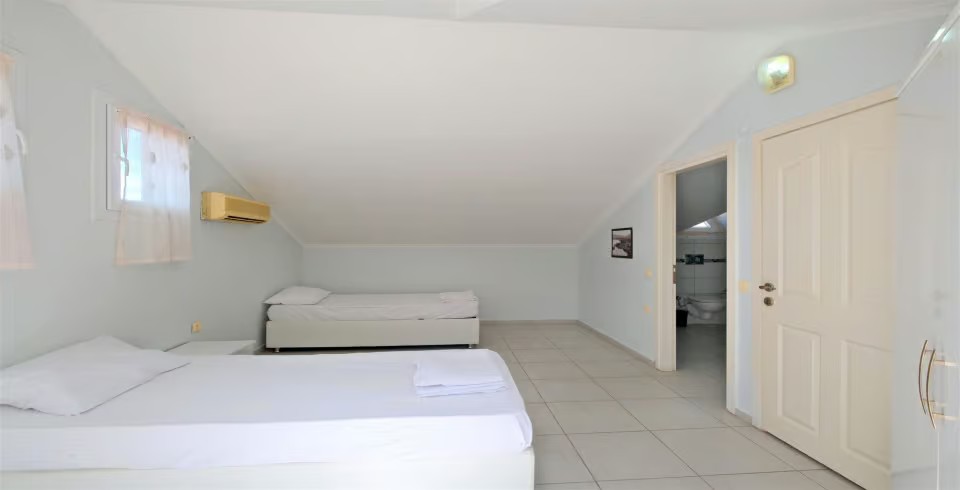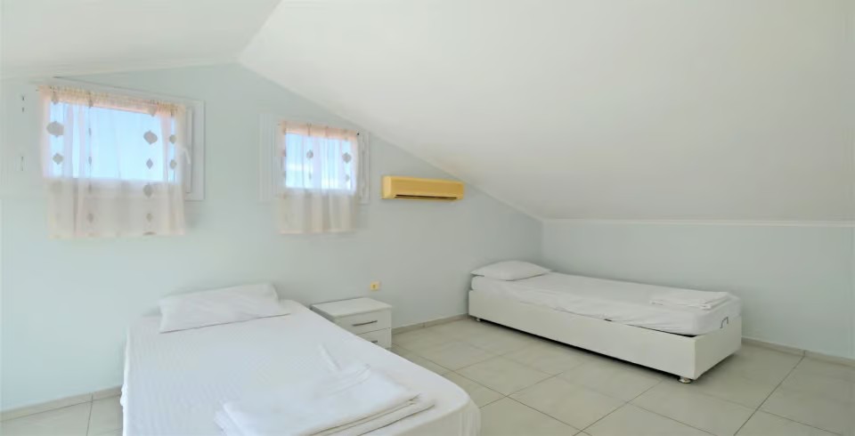 3. Yatak odası: 2 adet tek kişilik yatak, elbise dolabı, komodin, klima, banyo ve tuvalet bulunmakta