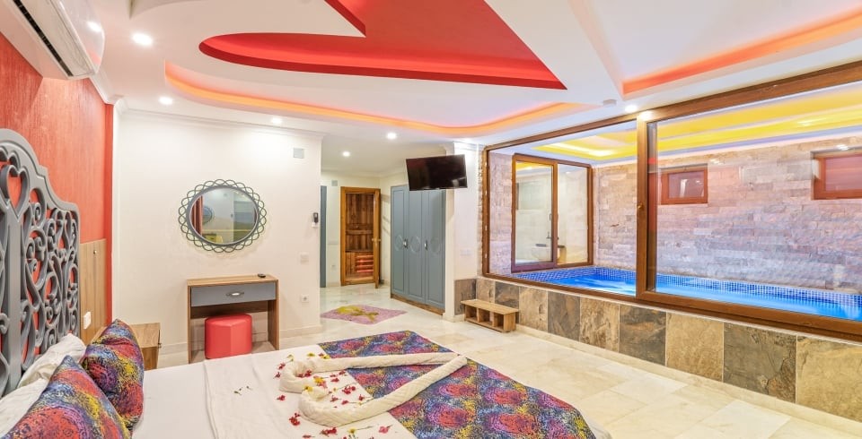 Villanın geniş özel yüzme havuzu ve manzaraya karşı konumlanmış kapalı ısıtmalı havuzu, yılın her döneminde keyifli bir tatil imkânı sağlar. Tatilinizi daha da özel kılmak için villada jakuzi, sauna ve çocuk oyun alanı gibi lüks detaylar da yer alır.