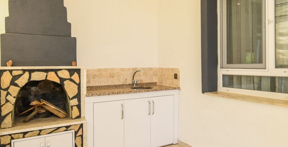 Mutfak : Villamızın geniş Amerikan mutfağı ile sizlere kendi evinizin mutfağı gibi hissettirecek. Ayrıca mutfakta klima, bulaşık makinası, buzdolabı, çamaşır makinası, mikrodalga fırın, tost makinası, ekmek kızartma, su ısıtıcısı, fırın, 4'lü ocak seti ve 4 kişilik geniş yemek masası ile tava tencere vb. mutfak araç gereçlerini kullanma fırsatını sizlere sunuyoruz.