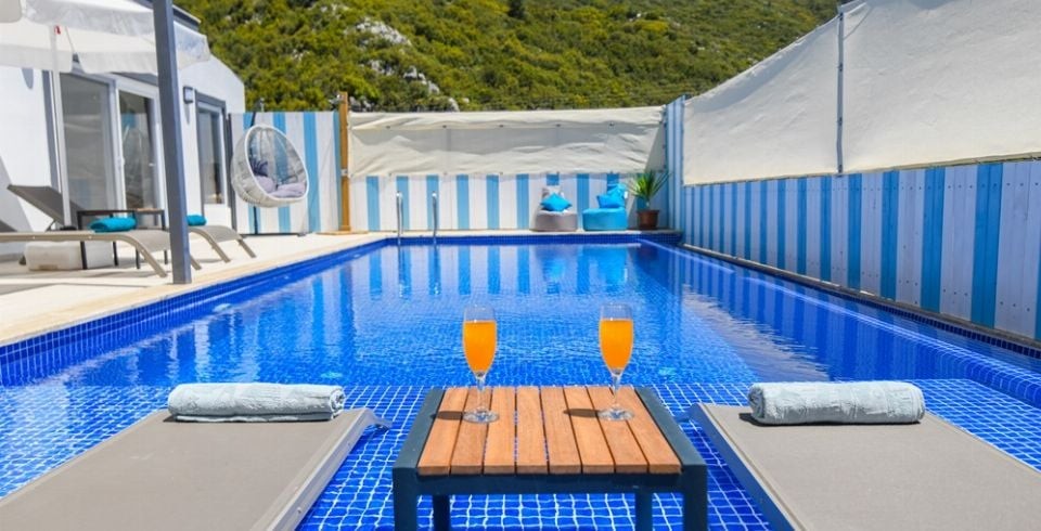 Villa İkizce, Kalkan Ekizce bölgesinde bulunuyor olup 4 kişilik konaklama kapasitesi ile 2 yatak odasına sahiptir. Doğa içerisinde mavi konsept ile dizayn edilmiş villamız aynı zamanda muhafazakâr aileler için uygun olarak düzenlenmiştir. Aynı zamanda ekonomik olan villamız hem hesaplı hem de çok şık bir tasarıma sahiptir. Balayı çiftlerinin de gözdesi olan villamız, özel bir tatil ve harika anılar biriktirmek için uygun kiralık villamızdır. Muhafazakâr villamızda bulunan geniş ve özel yüzme havuzu ile rahatça yüzebilir, suyun tadını çıkartabilir aynı zamanda bahçede bulunan şezlonglarda güneşlenerek, güneşin tadını çıkartabilirsiniz. Villa içerisindeki odada bir şezlong bulunuyor olup jakuzinin tadını çıkartabilirsiniz. Bahçede keyifli vakitler geçirebilmeniz için terasta birde salıncak bulunmaktadır. Villa İkizce, değerli müşterilerini bu yazda misafir etmek için bekliyor.