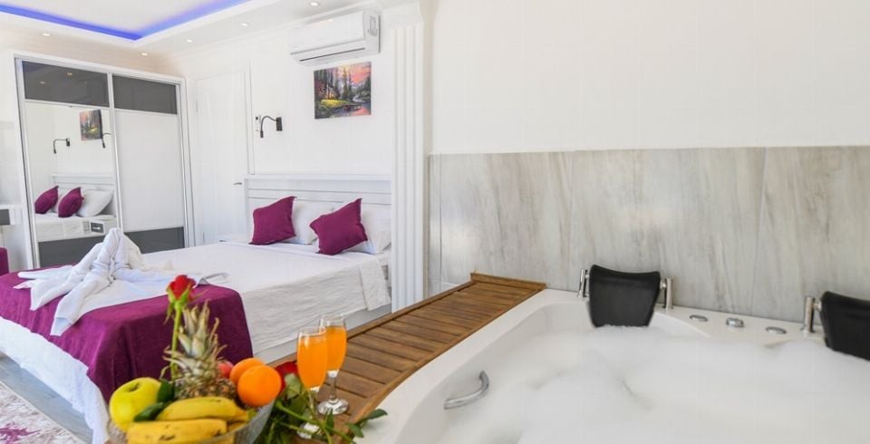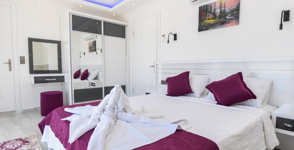 1. Yatak Odası : 1 adet çift kişilik yatak, klima, jakuzi, komodin, elbise dolabı, makyaj masası, banyo ve lavabo bulunmaktadır.