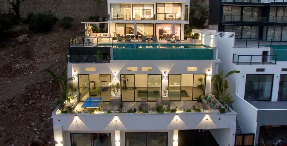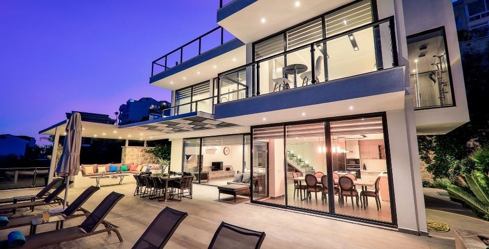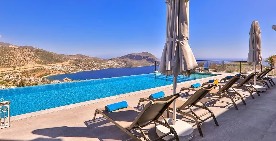 Kalkan Bölgesinde bulunan 5 yatak odalı 10 kişilik Full Deniz Manzaralı Lüks Kiralık yazlık villamızdır. Villamız Kalkanın en güzel konuma sahip bölgesinde bulunmaktadır. Villamız geniş bahçe ve havuz terasına sahip olup oldukça eğlenceli ve keyifli bir tatil sizi ve sevdiklerinizi beklemektedir. Villamız 5 kattan oluşup modern bir mimariye sahiptir. Villamızda misafirlerimiz için bir masa tanesi ve kapalı spor salonu bulunmaktadır. ayrıca kapalı havuzu sayesinde 12 ay kiralama fırsatı sunmaktadır. Konfor ve kaliteyi bu villamızda yaşayacaksınız .Muhteşem deniz ve adalar manzarasına sahip olan villamızda gün batımı keyfini sürebilirsiniz.