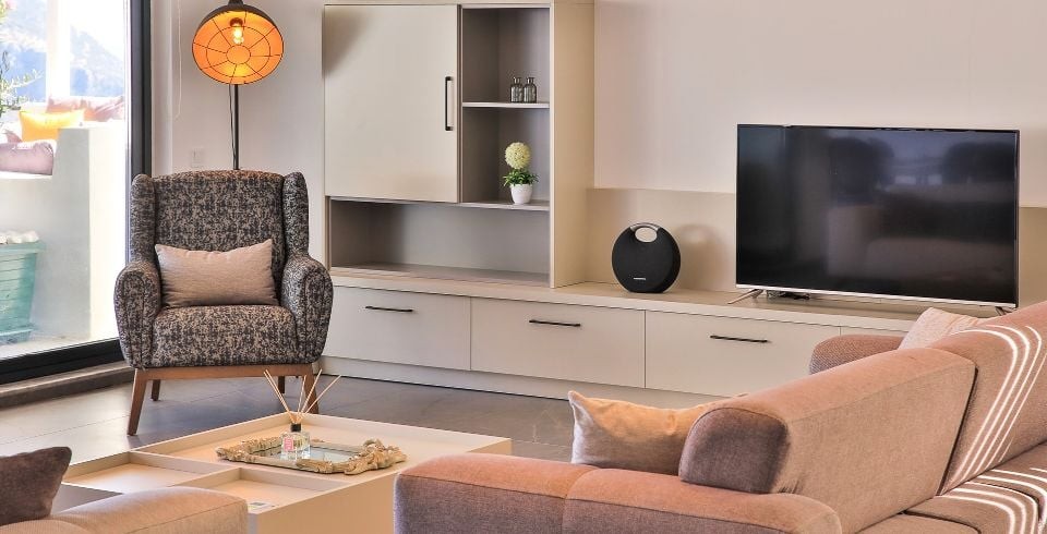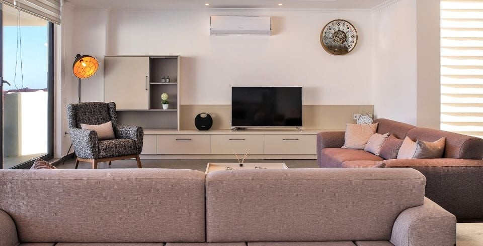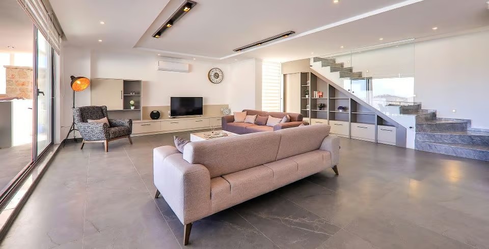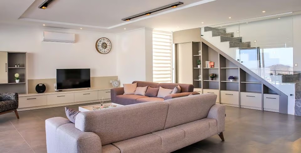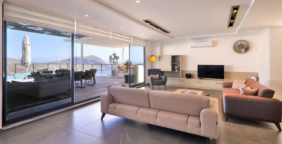 Salon : Salonda klima uydu alıcı, TV, DVD Player, oturma grubu, çocuk yatağı, çocuk koltuğu, lavabo yer almaktadır. Salon havuz katındadır. En üst katta dinlenmek ve güneşlenmek için çok geniş bir seyir terası daha vardır. Bu alanda da oturma gurubu ,masa ve sandalye bulunur.