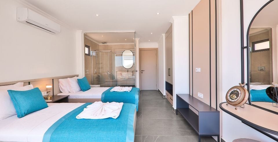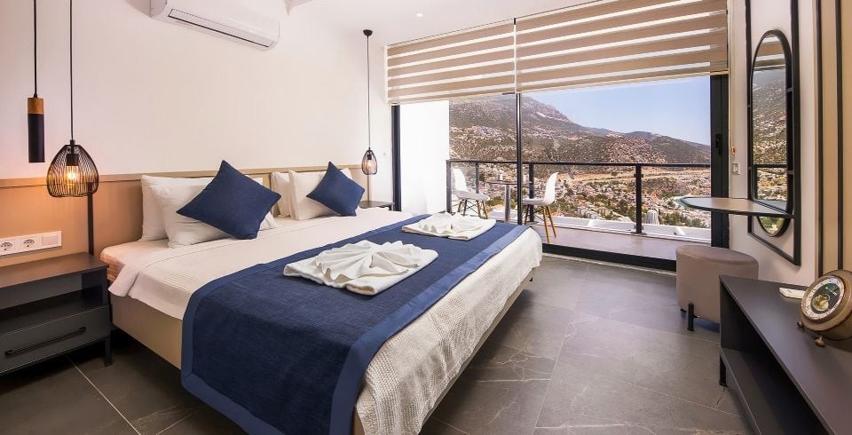5. Yatak Odası : Süit yatak odası çift kişilik konfor yatak, klima, makyaj masası, gardırop, banyo-WC ve balkon yer almaktadır.