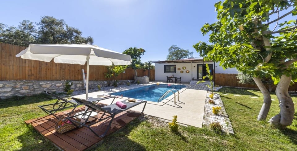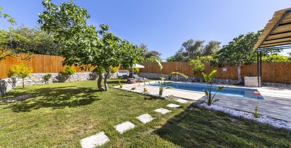 Kiralık yazlık villamız Kalkan Üzümlü bölgesinde konumlanmıştır. 1 yatak odalı jakuzili balayı villasıdır. Özel yüzme havuzu ve havuz terası tamamen korunaklı olup balayı çiftlerine özel dizayn edilmiştir Villamızın içerisinde tüm eşyalar mevcut olup tamamen siz değerli müşterimize konfore dizayn edilmiştir. Villamızın havuz terası bahçesi geniş olup barbekü ve vakit geçirmek için oldukça kullanışlıdır. Villamızın oturum kısmının hemen altında ev sahibimizin evi bulunuyor, ancak herhangi bir bağlantısı yada dezavantajı yoktur . Girişler ve çıkışlar tamamen bağımsız olarak sağlanmıştır.