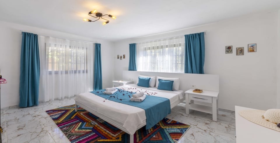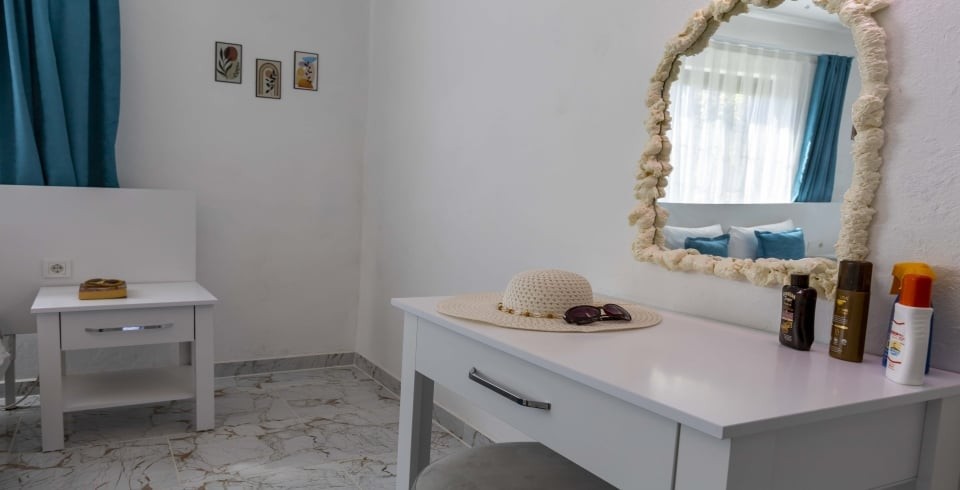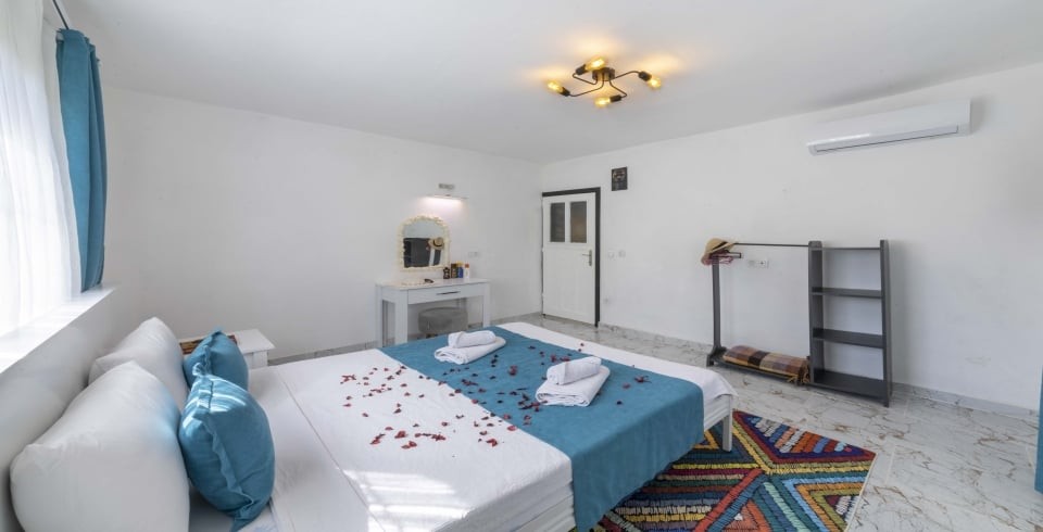 Yatak Odası : Sakin ve huzur dolu olan çift kişilik yatak odamızda ferahlamak istediğinizde açabileceğiniz klima, televizyon, makyaj masası, komodin, saç kurutma makinesi, elbise dolabı, lavabo ve banyo bulunmaktadır. Ayrıca lüks bir konfor içinde tatilinizi geçirmeniz adına odamızda jakuzi bulunmaktadır.