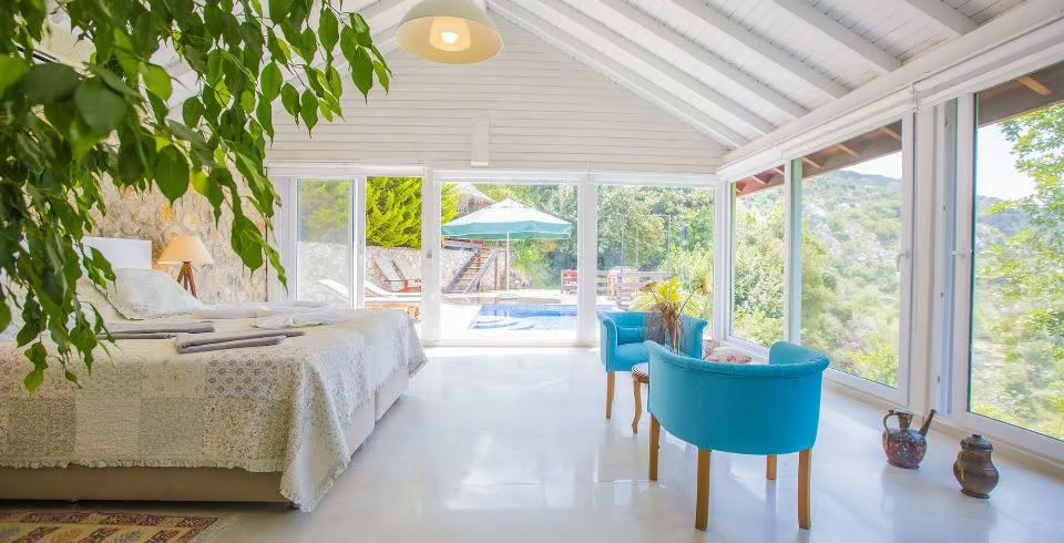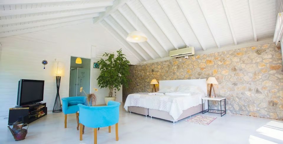 Kalkan İslamlarda bulunan muhafazakar deniz manzaralı villamızın hayallerinizdeki küçük kibar jakuzili olup eşsiz doğa manzarasının içerisin de tam tamamıyla balayı villası olarak seçilmiştir. Villamızın mutfak bolumu arka tarafta yer almaktadır. Çift kişilik yatak olup geniş odasını salon olarak kullanılmaktadır. Doğa manzarası arasında eşsiz güzel Patara plajı görünümü ile birlikte gün batımı şovunu yer minderinde izleme imkanı bulunmaktadır.