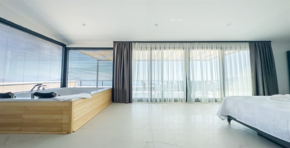 4.Yatak Odası: Lüks Süit Ebeveyn odası, Panoramik Kalkan, Deniz ve Doğa manzaralı olup, Banyo, Sauna, Jakuzi, Şezlong ve oturma grubu mevcuttur.