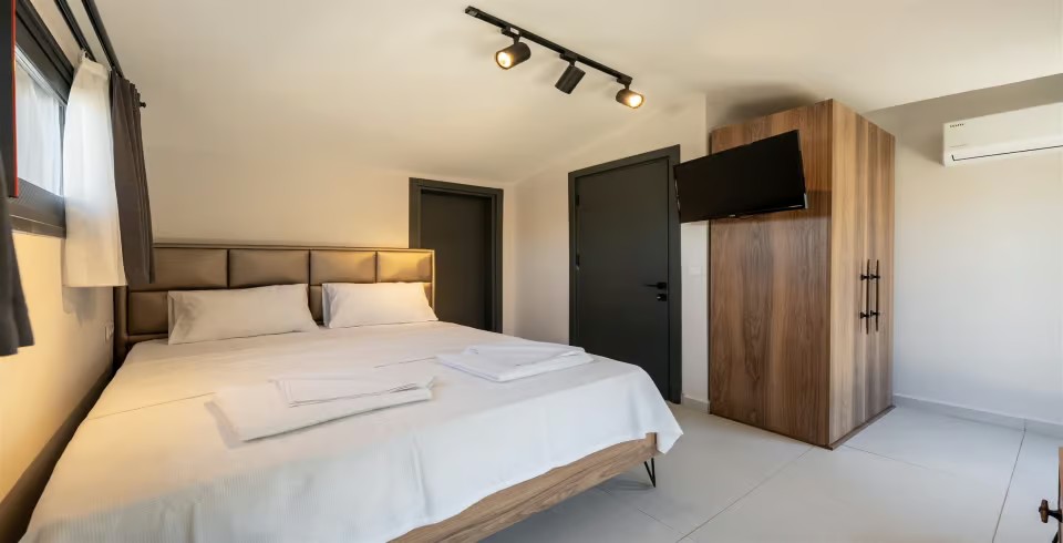1.Yatak Odası:  Çift kişilik yatak, klima,TV, elbise dolabı, makyaj masası,tuvalet ve banyo bulunmaktadır.