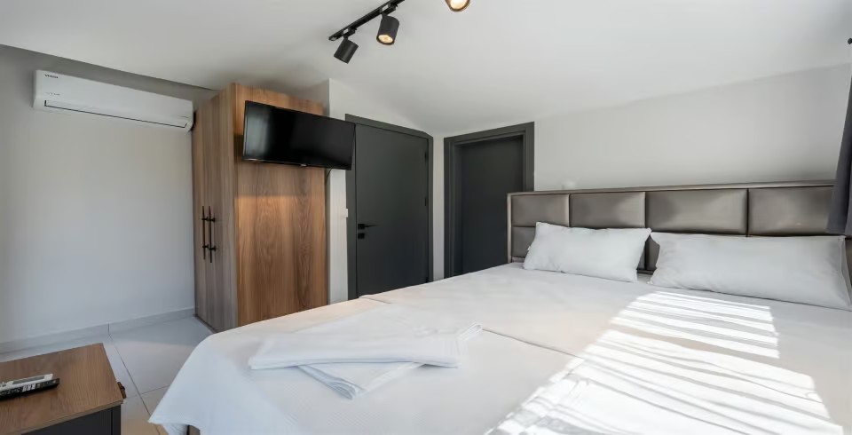 2.Yatak Odası:  Çift kişilik yatak, klima,TV, elbise dolabı, makyaj masası,tuvalet ve banyo bulunmaktadır.