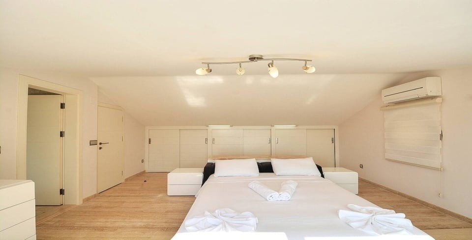 4. Yatak Odası : Çift kişilik bir adet yatak,  elbise dolabı, komodin, klima, banyo ve tuvalet bulunmaktadır.