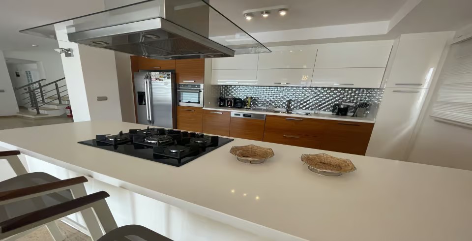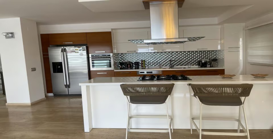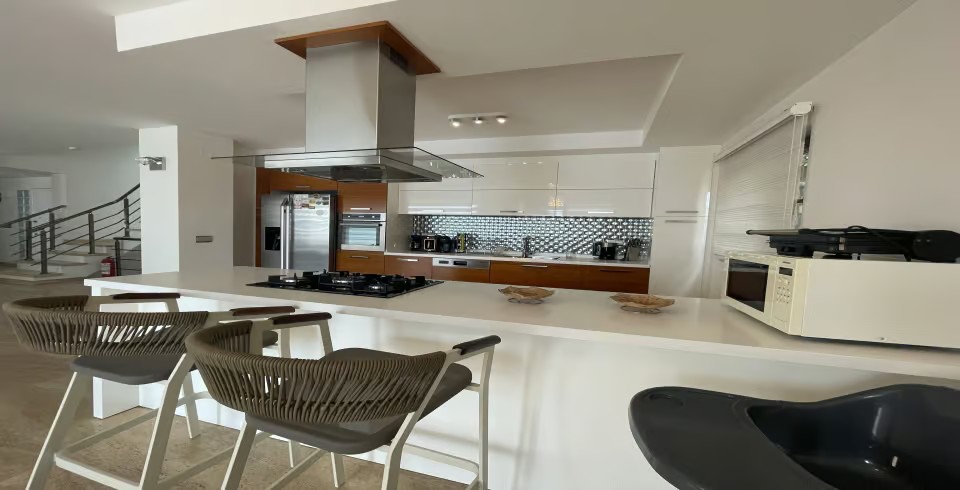 Mutfak: Tam donanımlı içerisinde tüm mutfak araç gereçlerinin olduğu modern Amerikan mutfağa sahiptir. Bu modern mutfak içerisinde buzdolabı, bulaşık makinesi, fırın, ocak, elektrikli su ısıtıcı, yemek masası, yemek takımları, çatal ve bıçak takımları, tencere ve tava takımları ve bardaklar bulunmaktadır.