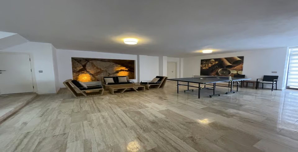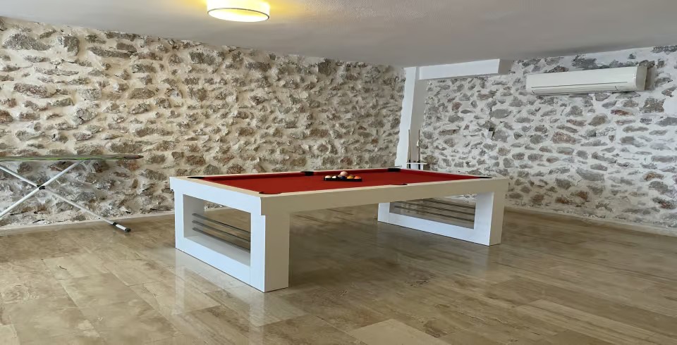 Villanın sunduğu bilardo masası, masa tenisi ve dart, tatilinize eğlence katarken, geniş terası ve açık alanları size panoramik Kalkan manzarası eşliğinde keyifli anlar sunuyor. Göz alıcı gün batımı manzarasına karşı akşam yemeğinizi yiyebilir, Kalkan’ın eşsiz manzarası eşliğinde huzurlu bir tatilin tadını çıkarabilirsiniz.