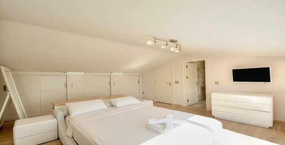 5. Yatak Odası : Çift kişilik yatak, elbise dolabı, komodin, klima, banyo ve tuvalet bulunmaktadır.