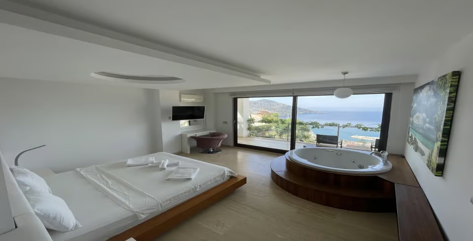 2.Yatak Odası: Çift kişilik bir adet yatak, elbise dolabı, komodin, klima, jakuzi, banyo ve tuvalet bulunmaktadır.