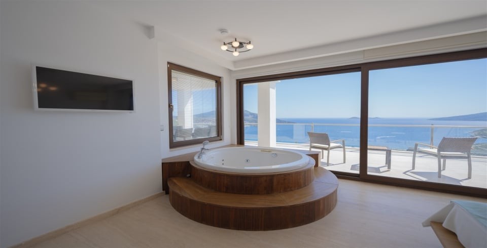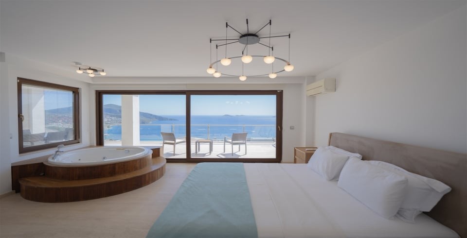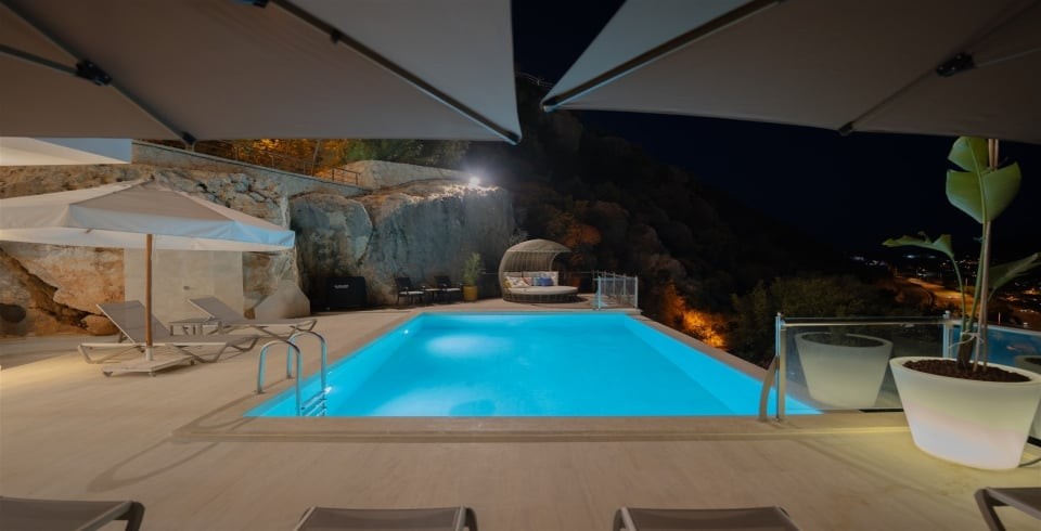 Kalkan’ın şehre hâkim tepelerinden birinde konumlanan Villa İnsel Rigel, eşsiz deniz ve şehir manzarası, modern tasarımı ve lüks detaylarıyla benzersiz bir tatil deneyimi sunuyor. 5 yatak odası ve 10 kişilik geniş kapasitesi, ferah yaşam alanları ve konforlu dizaynıyla büyük aileler ve arkadaş grupları için mükemmel bir konaklama sağlıyor. Jakuzisi, günün yorgunluğunu atmanız için rahatlatıcı bir atmosfer sunarken keyfini sürmenizi sağlıyor. Merkezi konumu sayesinde restoranlar, kafeler ve alışveriş noktalarına kolayca ulaşabilirsiniz.