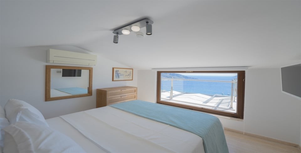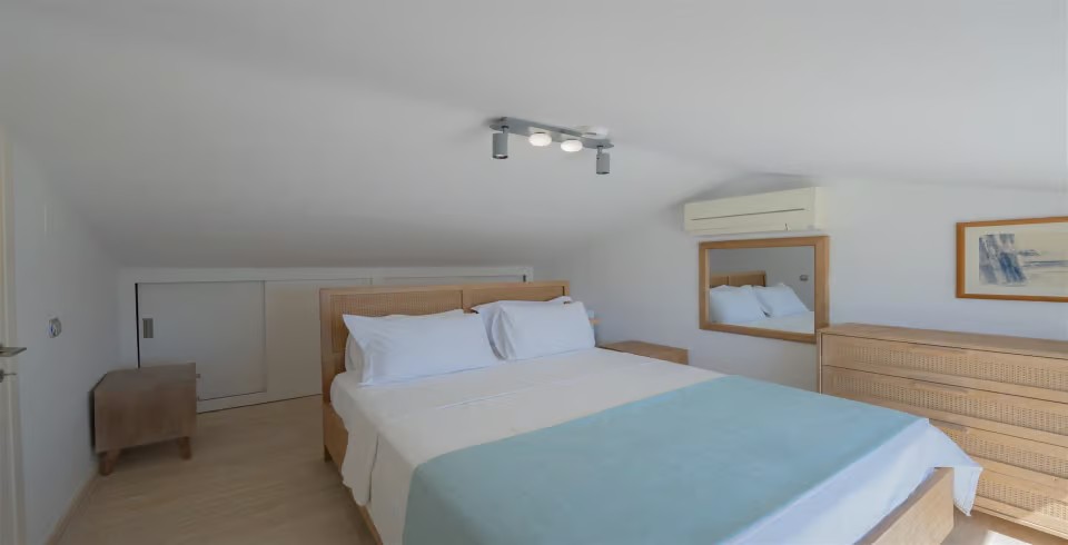 5. Yatak Odası : Çift kişilik yatak, elbise dolabı, komodin, klima, banyo ve tuvalet bulunmaktadır.