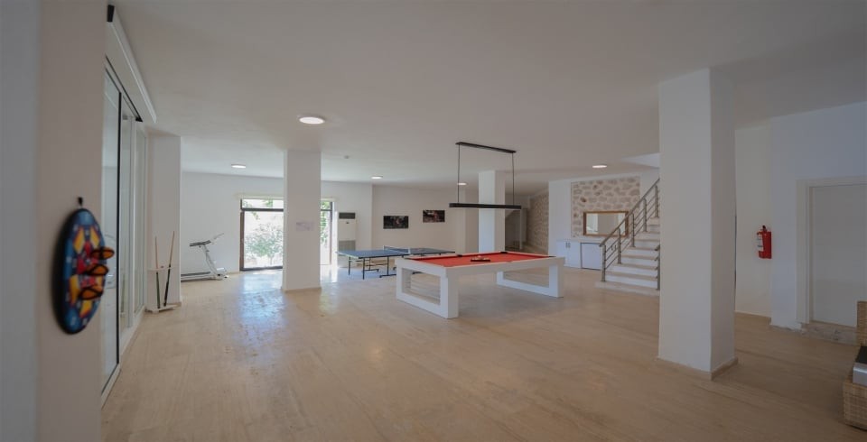Villanın sunduğu bilardo masası, masa tenisi ve dart, tatilinize eğlence katarken, geniş terası ve açık alanları size panoramik Kalkan manzarası eşliğinde keyifli anlar sunuyor. Göz alıcı gün batımı manzarasına karşı akşam yemeğinizi yiyebilir, Kalkan’ın ışıkları altında huzurlu bir tatilin tadını çıkarabilirsiniz.
