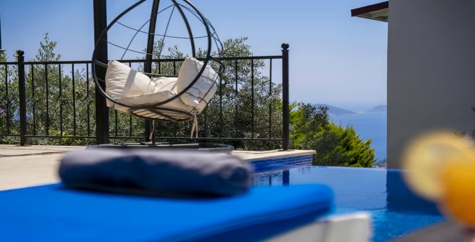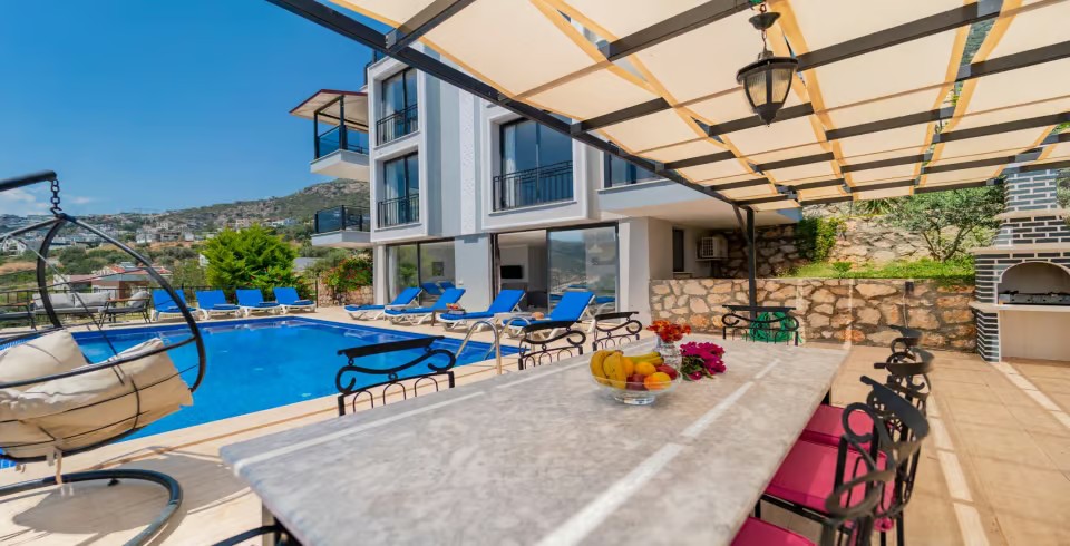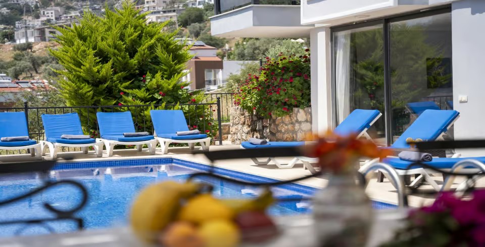 Havuz ve Bahçe : Villa havuz terasında özel yüzme havuzu, şemsiye, şezlong, barbekü, oturma grubu bulunmaktadır.