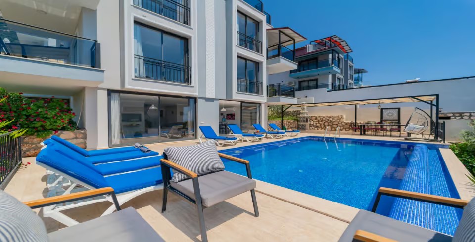Kiralık yazlık villam Kalkan Kızıltaş mevkisin de konumlanmıştır. Villamız 5 yatak odalı 10 kişilik kapasiteye sahip olup geniş aileler için düşünülmüş Full deniz manzaralı yazlık villalarımızdan bir tanesidir. Villamızın son derece kaliteli eşyalarla donatılmış olup kaliteden ödün verilmemiştir. Özel yüzme havuz terasında oturma alanı ve sandalye masa barbekü bulunmaktadır. Villamız Kalkan Merkeze yakın bir konumda bulunmakta olup market ve çarşıya yakın bir konumda bulunmaktadır. Dünyaca ünlü Patara ve Kaputaş plajları yine villamıza araç ile 20-25 DK ulaşım mesafesinde bulunmaktadır.