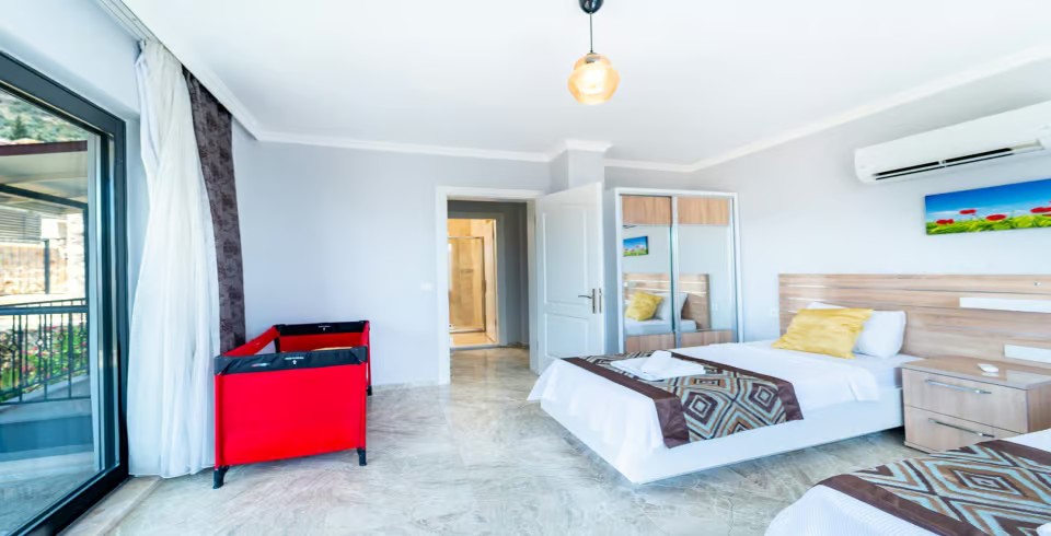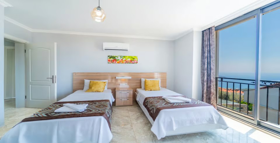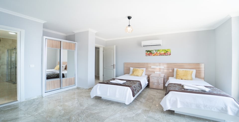 5. Yatak Odası : 2 adet tek kişilik yatak, klima, komodin, makyaj masası, elbise dolabı, banyo ve tuvalet bulunmaktadır.