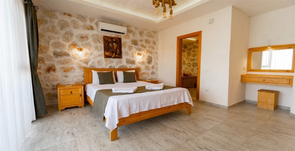 1. Yatak Odası : Çift kişilik yatak, klima, jakuzi, komodin, elbise dolabı, makyaj masası, banyo ve tuvalet bulunmaktadır.