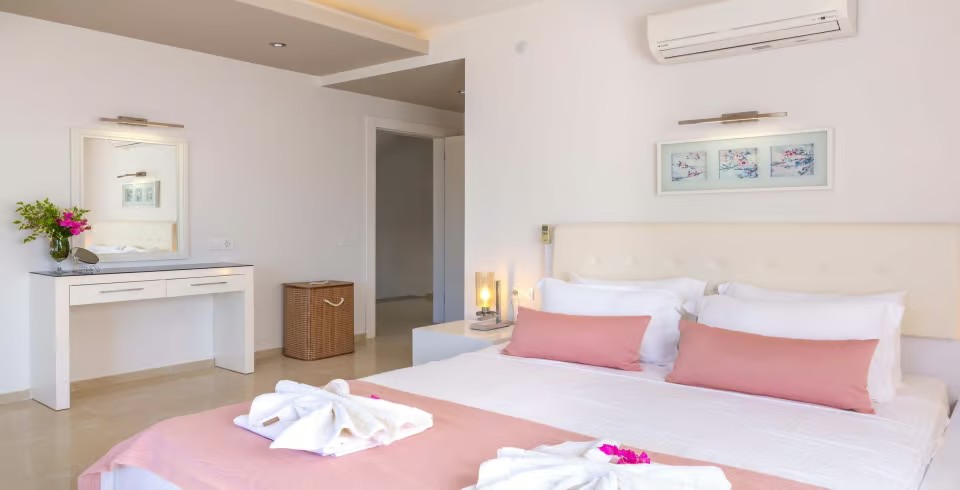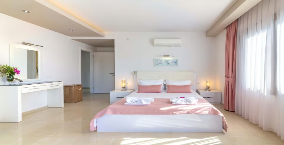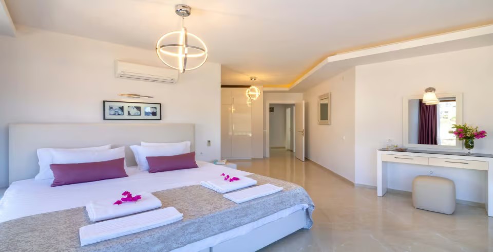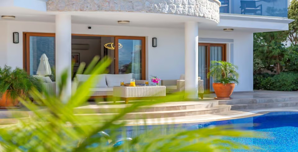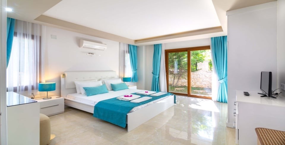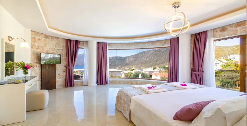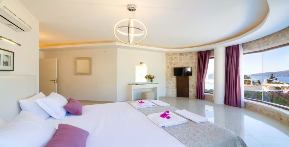 Kalkan Kalamar Bölgesinde bulunan deniz manzaralı  5 yatak odası ile 10 kişiye kadar konaklayabilirsiniz. Kalabalık aile ve arkadaş grupları için oldukça ideal bir villadır. Villamızın geniş bahçesinde havuz, şezlong, güneş şemsiyeleri, oturma köşesi, yemek masası yer almaktadır. Denize ve merkeze yakın konumda villa kiralamak isteyen misafirlerimizler sayfamızdan erken rezervasyon fırsatı ile kiralayabilirsiniz.