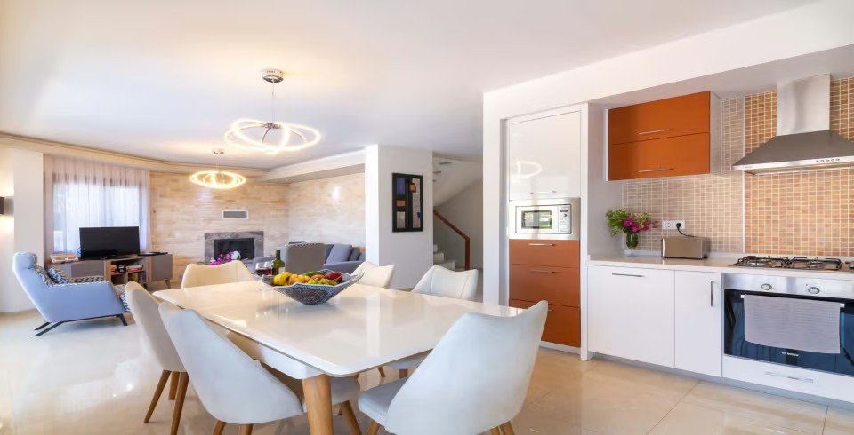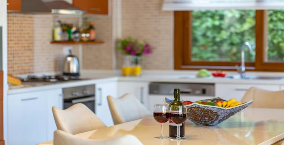 Mutfak : Eksiksiz ve modern bir şekilde dekore edilmiş Amerikan mutfağımızın içerisinde yer alan buzdolabı, fırın, su ısıtıcısı, çatal, bıçak gibi mutfak eşyaları sayesinde kolayca yemeklerinizi hazırlayabilirsiniz.