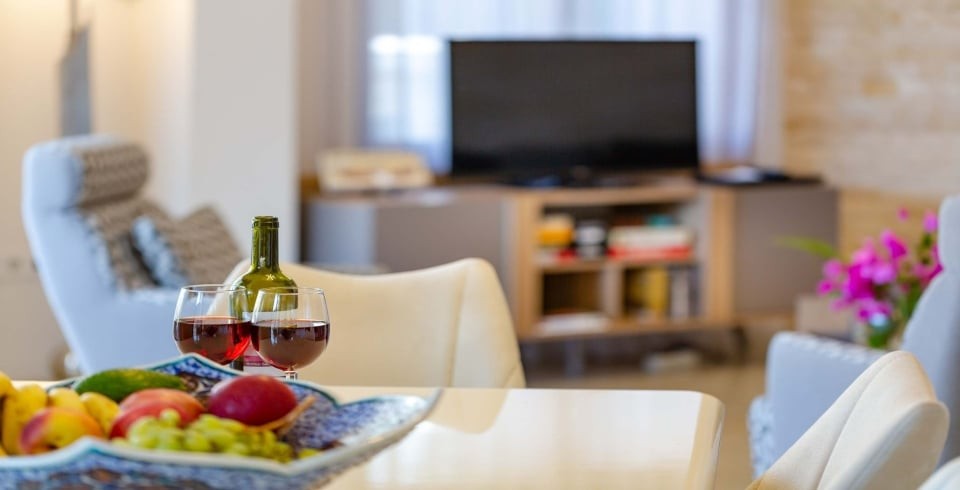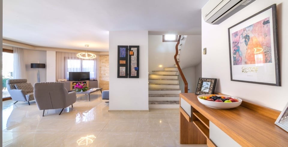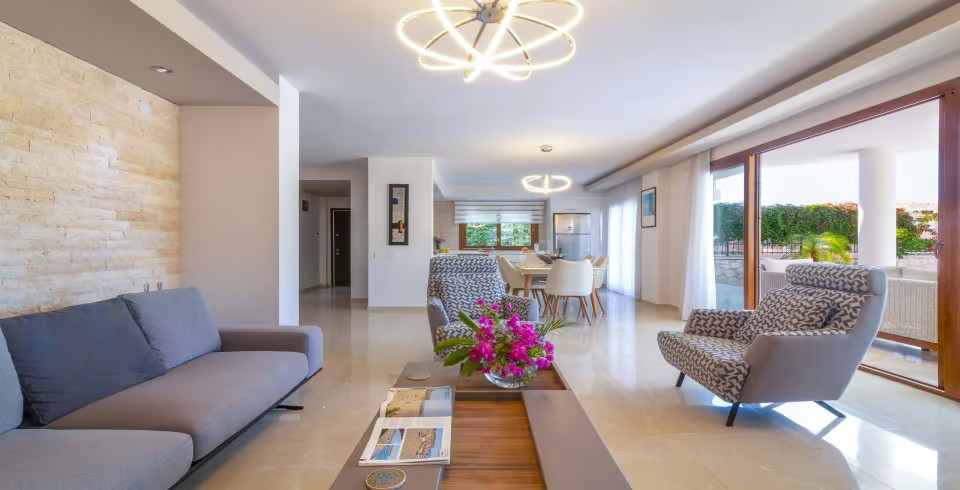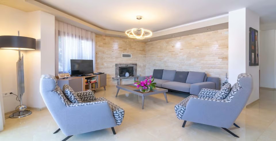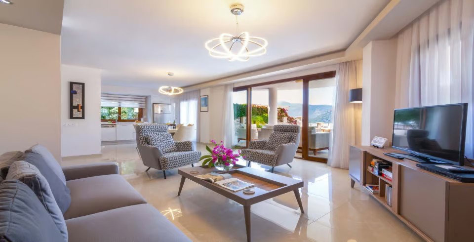 Salon : Salonda bulunan lüks ve konforlu oturma grubu, TV, klima gibi rahatınıza eşlik edecek eşyalar ile manzaranın keyfini salondan çıkarabilirsiniz.
